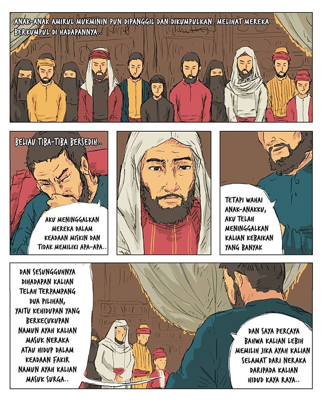 “Sesungguhnya wasiatku kepada anak-anakku hanyalah Allah yang telah menurunkan kitab Alquran sebagai kebenaran dan Dia-lah yang melindungi orang-orang yang shalih. Jika mereka menjadi orang yang shalih dan bertakwa, Allah akan mencukupinya dengan karuniaNya dan Dia akan menjadikan jalan keluar bagi setiap kesulitan yang dihadapi. Namun jika mereka durhaka dan berkubang maksiat, maka sekali-kali aku tidak mau menjadi orang yang membantu mereka dengan harta untuk bermaksiat kepada Allah!.” ~’Umar bin ‘Abdul ‘Azis
