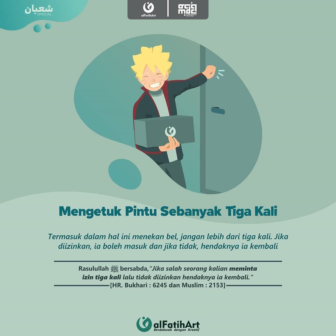 Pada ketukan yang pertama tuan rumah akan mendengarkan, pada ketukan yang kedua dia bersiap-siap, dan pada ketukan yang ketiga dia mengizinkan masuk. Jika tidak diizinkan, hendaknya si tamu tersebut kembali.